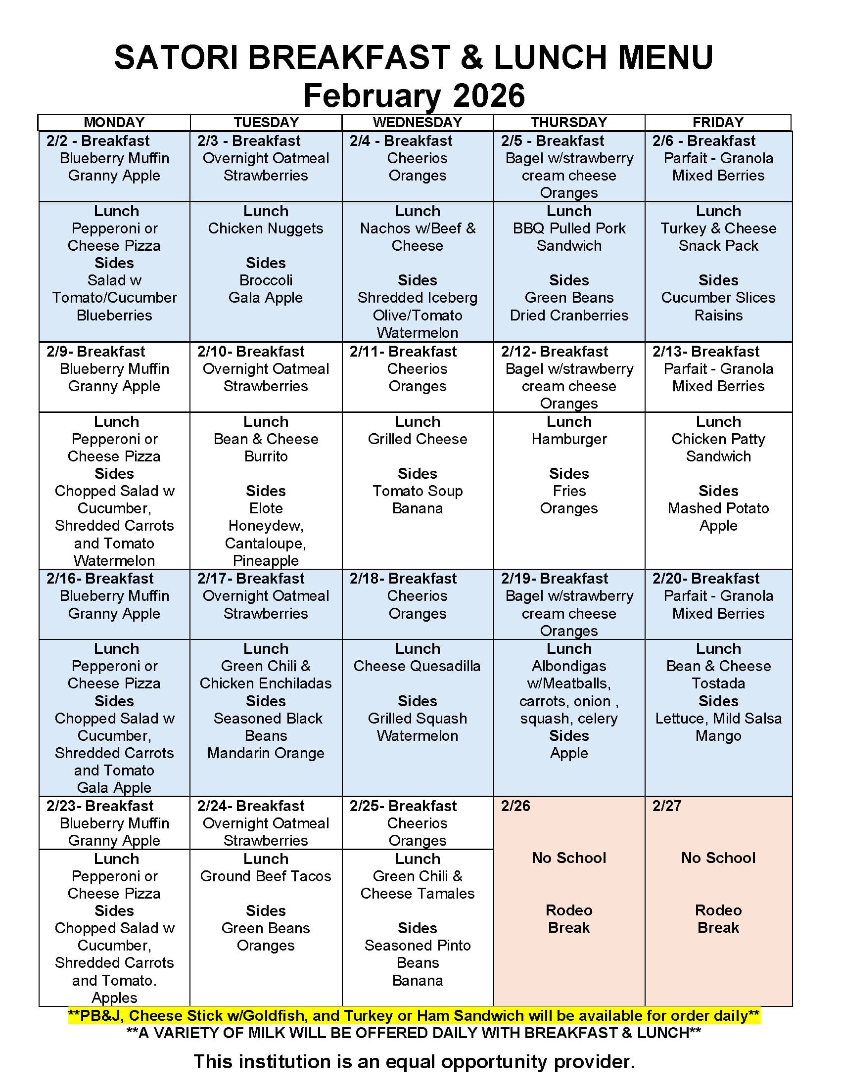 Meal ordering for February 23rd - 25th is available. No School on Feb 26th and 27th
